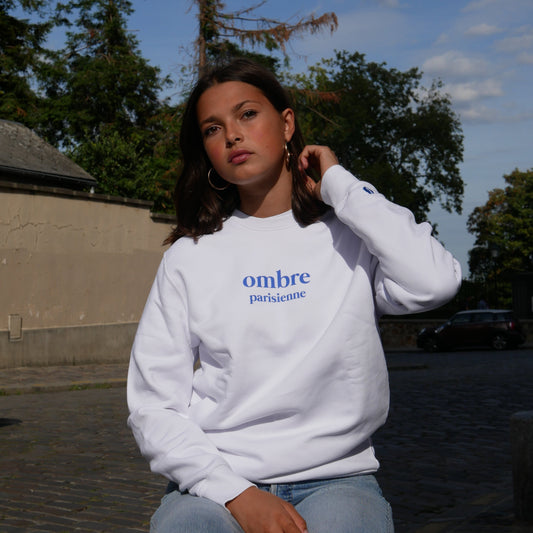 「Ombre Parisienne」ラウンドネックスウェットシャツ、ホワイト。
