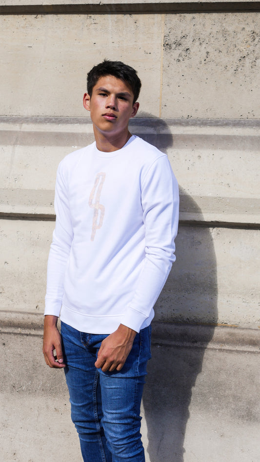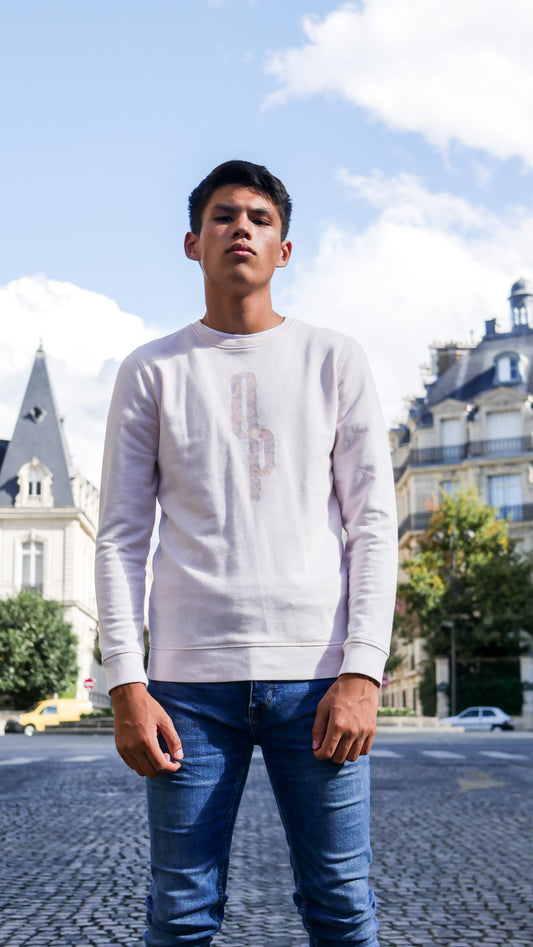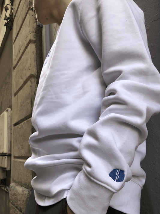 「Ombre Parisienne」ラウンドネックスウェットシャツ、ホワイト。