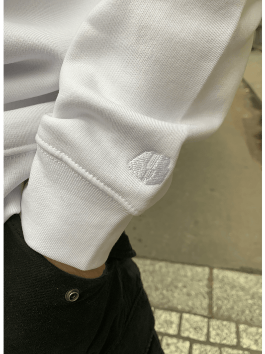 「Fiore」ラウンドネックスウェットシャツ、ホワイト。