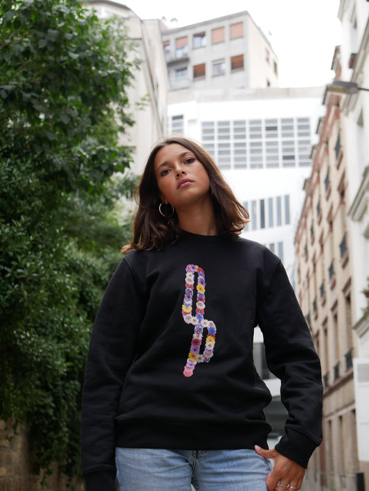 「Fiore」ラウンドネックスウェットシャツ ブラック
