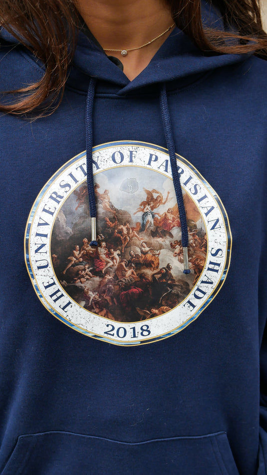 「University」フード付きスウェットシャツ - ネイビーブルー