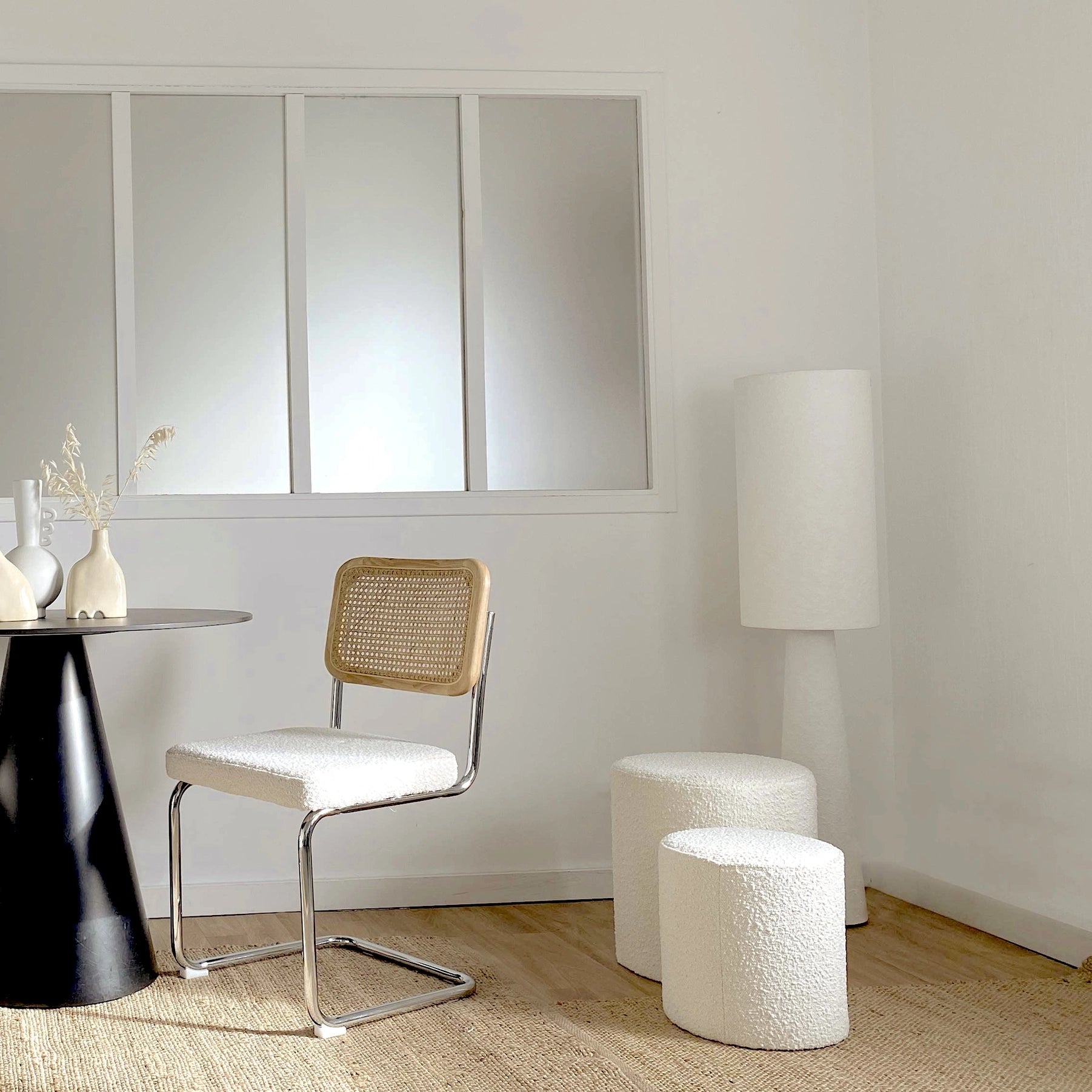 Lampadaire en papier mâché avec la possibilité d’éclairage du pied et de l'abat-jour de manière séparé ou ensemble afin d'ajuster vos ambiances.